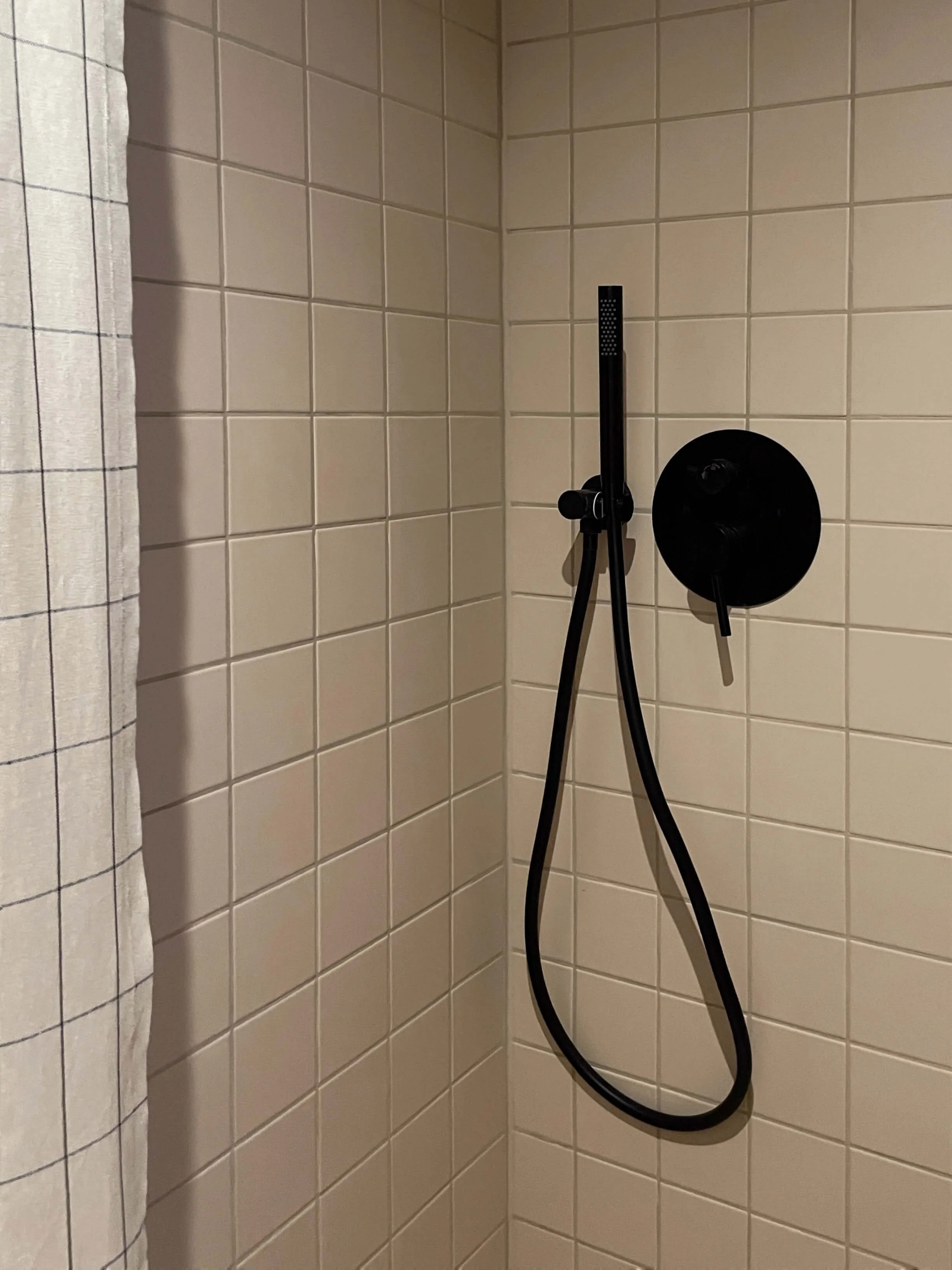 L’état de conservation du bien nous a obligé à tout évacuer pour partir sur de nouvelles bases, plus saines et plus adaptées au nouvel aménagement. On a créé une véritable salle de bains qui pouvait également contenir un espace buanderie. On a créé une cuisine ouverte dans la pièce de vie. On a conservé l’alcôve avec sa fonction de chambre à coucher. Mais on a surtout apporté une nouvelle douceur au lieu avec ce beige très pâle qui harmonise les imperfections des murs, rehaussé par la touche graphique du noir. Mais notre petite fierté a été la récupération d’une partie des éléments d’origine (les vieilles poutres, l’ancien banc de la cheminée, …) pour créer une partie des décors, comme un lien avec le passé de ce lieu.